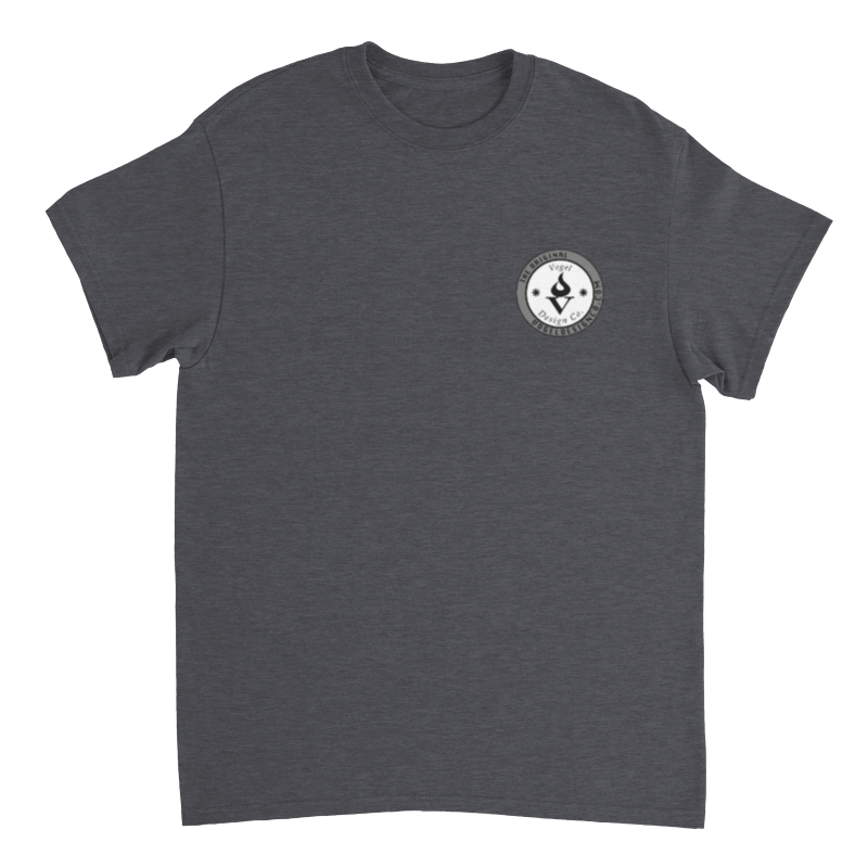 Sale $26.99 Reg. $29.00Vogel Design Co. logo badged. This heavyweight cotton t-shirt is a durable staple product with a classic fit. One of the most popular items, it has a relaxed style made for everyday and casual wear - Seamless double-needle collar - Double-needle sleeve and bottom hems - 100% combed and ring-spun cotton - Taped neck and shoulders for durability This product is made on demand. No minimums. Material - Solid colors are 100% cotton - Sports Grey is 90% ring-spun cotton, 10% polyester - Other heather colors are 50% polyester, 50% ring-spung cotton - Fiber content may vary by color Brands - Gildan 5000